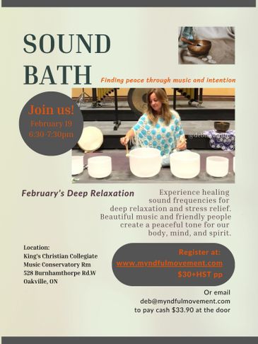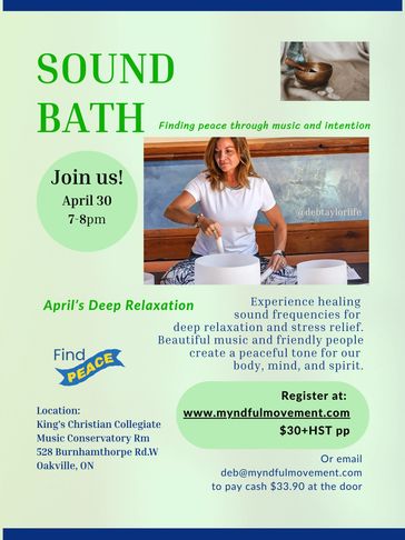 a Sound Bath are found monthly in the Oakville community, for your corporate workplace, and for your private functions.